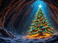 Jaskinia, Boże Narodzenie, Skały, AI, Choinka
