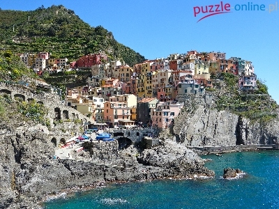 Cinque, Skały, Domy, Manarola, Włochy, Terre, Morze