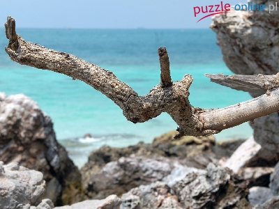 Skały, Gałąź, Morze, Fale, Sucha