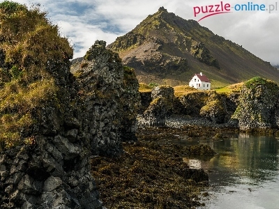 Góry, Półwysep Snæfellsnes, Dom, Islandia, Wieś Arnarstapi, Skały