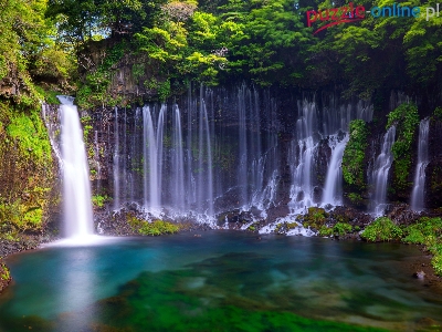 Wodospad Shiraito, Rośliny, Skały, Japonia, Fujinomiya