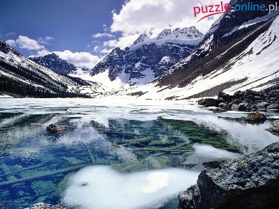 Skały, Kanada, Ośnieżone, Góry, Jezioro