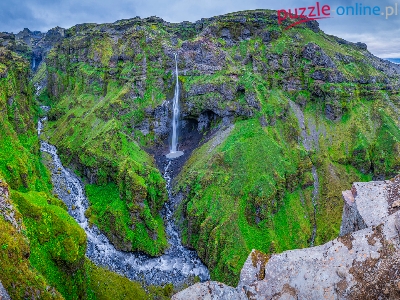 Góry, Wodospad Hangandifoss, Kanion Mulagljufur, Omszałe, Islandia, Skały