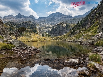 Skały, Odbicie, Góry, Jezioro, Kamienie