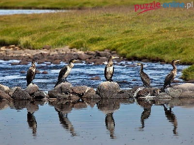 Puzzle Skały, Kormorany, Jezioro, Łąka