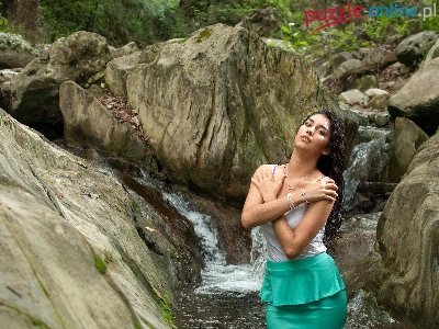 Puzzle Skały, Biżuteria, Kobieta, Wodospad