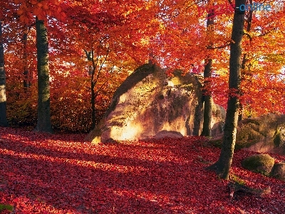 Karpaty, Skały, Promienie słońca, Las, Ukraina, Jesień, Liście