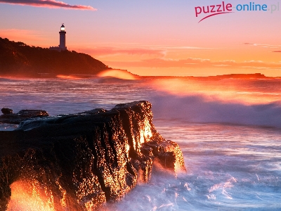 Morska, Skały, Fale, Promienie, Latarnia, Słońce, Morze