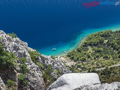 Puzzle Skały, Góry, Morze, Motorówki
