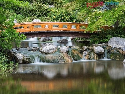 Skały, Park, Drzewa, Rzeka, Most, Krzewy