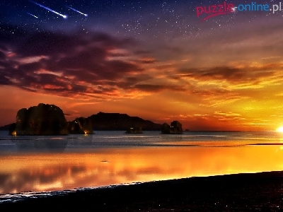 Skały, Gwiazdy, Morze, Plaża, Niebo