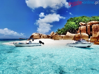 Puzzle Skały, Ocean, Plaża, Łódki