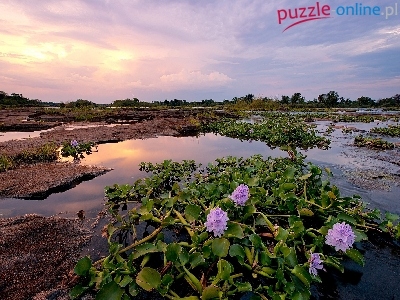 Skały, Rosliny, Rzeka, Rozlewisko, Wodne