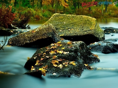 Skały, Kamienie, Las, Rzeka, Jesień