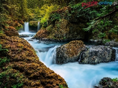Puzzle Skały, Wodospad, Rzeka, Las
