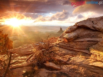 Puzzle Skały, Zachód, Słońca, Drzewa