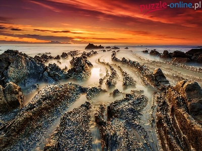 Puzzle Skały, Zachód, Słońca, Morze