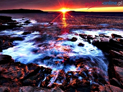 Puzzle Skały, Zachód, Słońca, Rzeka