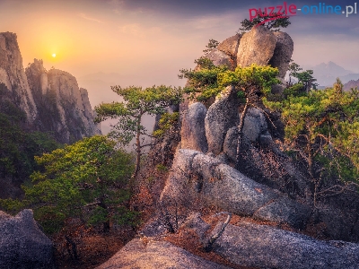 Puzzle Góry, Skały, Sosny, Wschód słońca