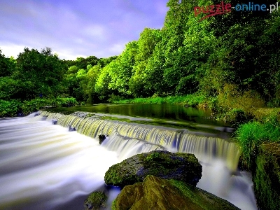 Puzzle Skały, Las, Wodospad, Mech