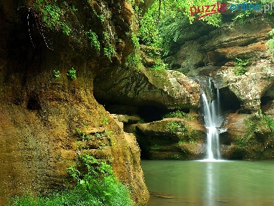 Puzzle Wodospad, Skały, Zieleń