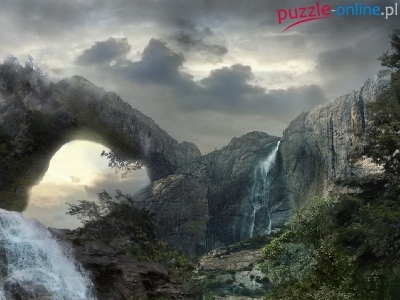 Puzzle Wodospady, Skały, Chmury