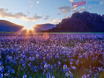 Skały, Łąka, Słońca, Kwietna, Wzgórza, Promienie