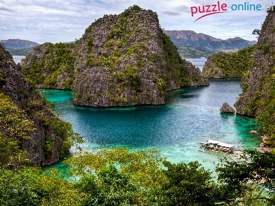 Skały, Palawan, Morze, Zarośnięte, Filipiny