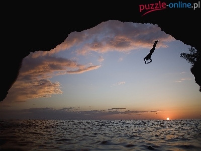 Skała, Skok, Wody, Słońca, Morze, Zachód, Do