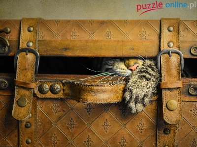 Puzzle Skórzana, Szary, Kot, Walizka