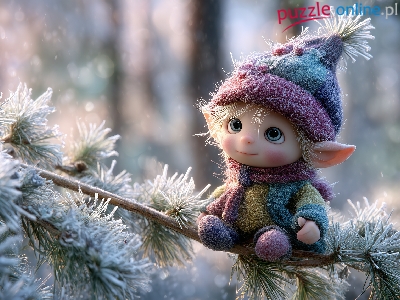 Puzzle Szron, Skrzat, Gałązka, Grafika AI