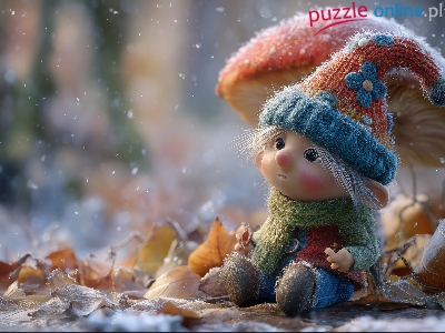 Puzzle Liście, Skrzat, Grzyb, Grafika AI