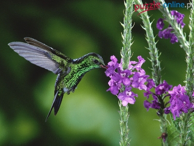 Puzzle Skrzydła, Koliber, Ptak, Kwiaty