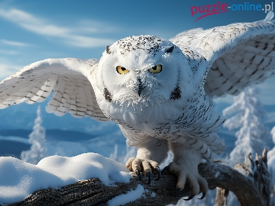 Sowa śnieżna, Konar, Skrzydła, Grafika, Zima