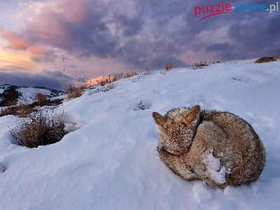 Puzzle Skulony, Zima, Śnieg, Lisek