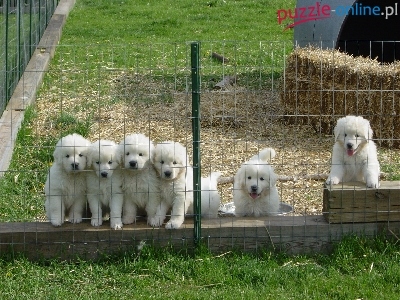 Puzzle słoma, Szczeniaki, Owczarki podhalańskie, płot