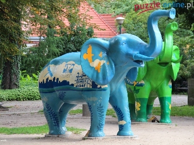 Puzzle Słoń, Niebieski, Zielony, Rzeźba