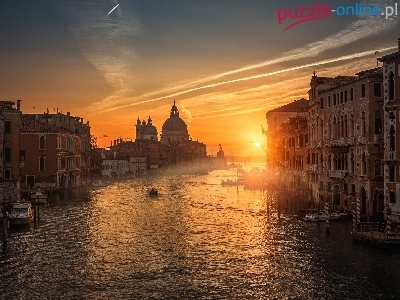 Zachód słońca, Wenecja, Łodzie, Włochy, Canal Grande, Budynki