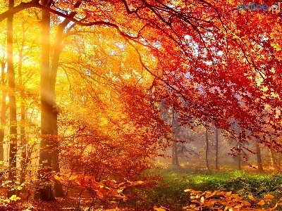 Drzewa, Słońca, Jesień, Promienie, Las, Poranek, Mgła