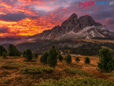 Roślinność, Włochy, Drzewa, Chmury, Dolomity, Góry, Zachód słońca
