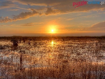 Park Narodowy Everglades, Bagno, Stany Zjednoczone, Floryda, Zachód Słońca