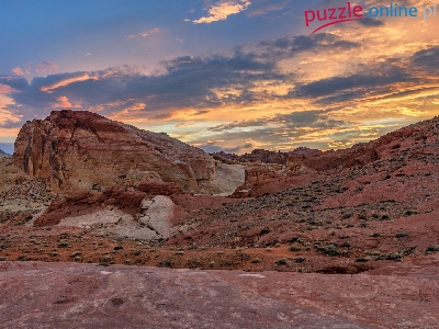 Valley of Fire, Skały, Dolina Ognia, Stany Zjednoczone, Zachód słońca, Piaskowce, Nevada