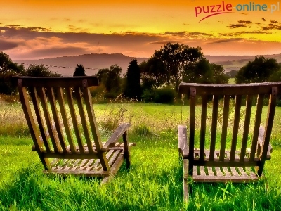 Łąka, Fotele, Zachód, Słońca, Dwa