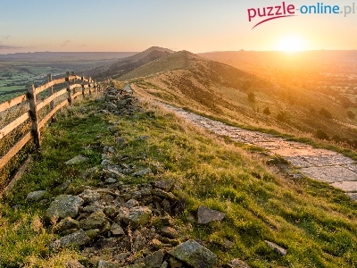 Hrabstwo Derbyshire, Droga, Ogrodzenie, Wschód słońca, Anglia, Park Narodowy Peak District, Kamienie