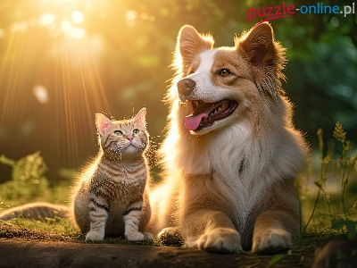 Puzzle Promienie słońca, Kot, Pies, 2D