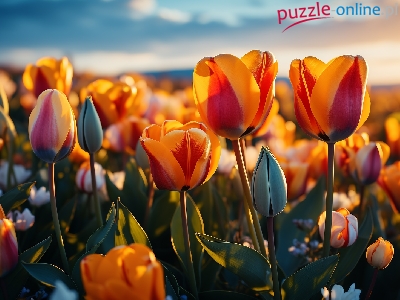 Puzzle Zachód słońca, Kwiaty, Tulipany, Grafika