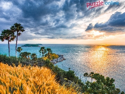 Chmury, Przylądek Phromthep, Palmy, Tajlandia, Morze Andamańskie, Wschód słońca
