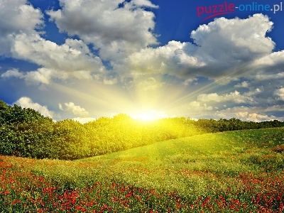Słońca, Makowe, Chmury, Promienie, Pole