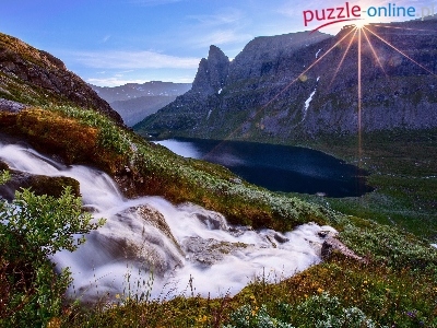 Puzzle Słońca, Góry, Promienie, Trawy