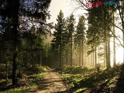Puzzle Słońca, Las, Promienie, Droga